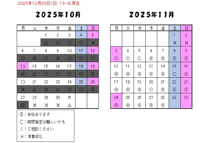 ご連絡いただいた時点で、あらためて空き状況をご案内いたします。